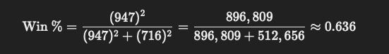 Consider the 2023 Atlanta Braves: The Braves scored 947 runs and allowed 716 runs over the course of the season. Here’s how the Baseball Pythagorean Theorem would be applied in this case: